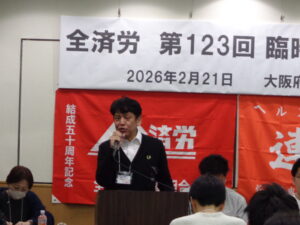 全済労は2月21日(土)に、大阪府・江坂において臨時中央大会を開催した。